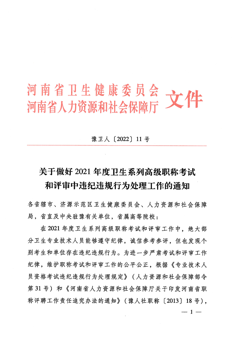 关于做好2021年度卫生系列高级职称考试和评审中违纪违规行为处理工作的通知